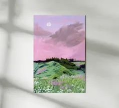 Sarah Gesek geeft haar landschappen een buitenaards wonderlandgevoel met rijke kleuren en brengt verre werelden bij je thuis. De kunstenares uit Seattle werkt het liefst met acrylverf op papier, maar ook met gouache, kleurpotloden, waskrijt en meer. Geïnspireerd door het natuurlijke schouwspel van ruige kliffen en glooiende tuinen, sterrennachten en sfeervolle luchten, geven Sarah's werken een gevoel van reislust. Duik erin, wandel er doorheen en word opnieuw verliefd op onze wereld.