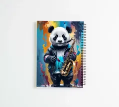 Panda en saxofoon.