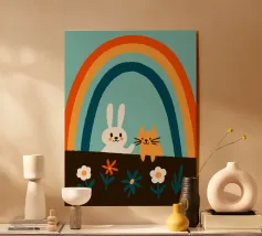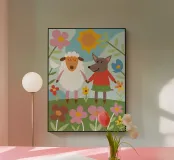 Op deze unieke illustratie staan een schaap en een wolf naast elkaar. Ze verbeelden een onverwachte vriendschap en de schoonheid van acceptatie.
