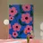 A vibrant, seamless pattern of stylized pink flowers against a dark blue background. The composition is a bold, modern, and beautiful piece of graphic floral design.