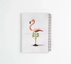 Komische illustratie van het herwerken van de uitdrukking, met de voeten stevig op de grond. Met behulp van een van de meer glamoureuze en statische vogels die er zijn; de flamingo