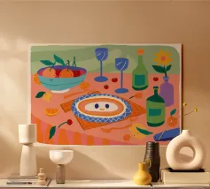 Hoewel Maria, de kunstenares achter Berserk Prints, in haar werk niet direct het kustlandschap van de Costa Brava afbeeldt, vangt ze perfect de gloed en het leven van haar mediterrane thuisland. Haar ontwerpen richten zich op de overvloed en de geneugten van het leven: het gefluister van stemmen in de verte en het gekletter van bestek tijdens een maaltijd in de buitenlucht, de frisse zeebries en alle kleuren van de natuur, zoals fruit, bloemen en dieren. Maria's werk heeft een subtiele maar tastbare textuur die elk afgewerkt stuk een delicate, expressieve energie geeft - en ons doet dromen van een zomerse picknick met vrienden.