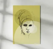 Een kalm en introspectief portret gemaakt met losse inktlijnen en zachte geometrische vormen. De tekening legt een rustig moment van focus vast, waar gedachten tot rust komen en aanwezigheid vorm krijgt. Imperfecte lijnen en transparante lagen geven het werk een rauwe, eigentijdse uitdrukking die prachtig werkt in moderne interieurs.