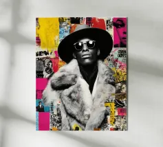 Een collage van analoge en digitale ontwerpmethoden in een hoogglanzende esthetiek.