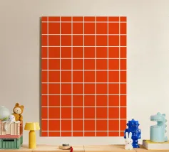 Geef je huis meer karakter met dit charmante rode rasterkunstwerk. Verticale en horizontale lijnen, uit de vrije hand getekend, creëren een speels gevoel van imperfectie dat warm en authentiek aanvoelt. Het levendige rood brengt energie en durf, waardoor het een opvallende keuze is voor eclectische interieurs, creatieve ruimtes of moderne huizen die individualiteit vieren.