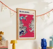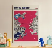 Voel de levendige energie van Rio de Janeiro in dit expressieve kaartkunstwerk. Het opvallende kleurenschema in combinatie met strakke lijnen brengt de iconische kusten, straten en waterpartijen van deze fascinerende metropool op een moderne manier naar voren. Als eerbetoon aan Brazilië of als decoratief hoogtepunt combineert dit ontwerp stedelijke flair met artistieke elegantie. Perfect voor liefhebbers van Rio en hedendaagse muurkunst.