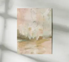 Deze abstracte natuurillustratie combineert zachte kleuren in lichtroze, beige en lichtgrijs met organische kleurvlakken en fijne details. De combinatie van penseelstreken en gedempte tinten creëert een dromerige, grillige scène die perfect past bij een moderne inrichting.