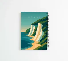 Minimalistisch en decoratief zomers Oostzee vakantieontwerp met een prachtig strand en de beroemde witte krijtrotsen van de Oostzeekust van Rügen. Zomers vakantieontwerp voor iedereen die graag op vakantie gaat aan de Duitse Oostzeekust of op het eiland Rügen.