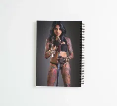 Een getatoeëerde jonge vrouw in lingerie met een samoeraizwaard