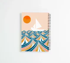 Set Zeilboot oceaan golven avontuur zee eclectisch grafisch boho eigentijdse collage natuur landgezicht