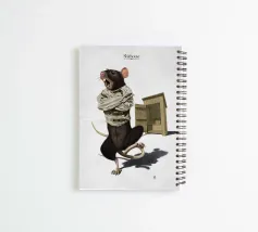Komische illustratie van een rat die gek is van leven en het schijthuis uit rent, als parodie op de beroemde stadsuitdrukking.