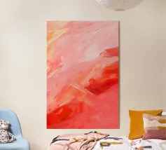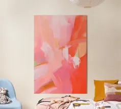 Dit kunstwerk is een delicate abstracte compositie opgebouwd uit gelaagde lagen warm roze, koraaltinten en subtiele crèmekleurige accenten. Zachte penseeltexturen en vloeiende verlopen creëren een gevoel van diepte en stille beweging en roepen eerder sfeer op dan vorm. Het sobere palet en de zachte overgangen nodigen uit tot rustige contemplatie, waardoor de kijker kleur als emotie kan ervaren. Minimaal maar expressief, het werk belichaamt balans, warmte en sereniteit, waardoor het ideaal is voor moderne interieurs, wellnessruimten en grootformaat fine art prints.