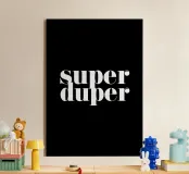 super duper, schwarz, weiß, Typografie, Zitat, Spruch, Spaß, Büro, Kinderzimmer, Wohnzimmer, Schlafzimmer, Küche, retro