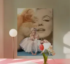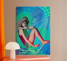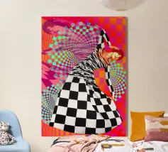 Geïnspireerd door een van de grootste supermodellen van de jaren zestig, past de moderne esthetiek van deze compositie heel goed in elk interieur en is absoluut perfect voor liefhebbers van leuk en smaakvol design. Een must have! Geweldig voor elke kamer of ruimte.