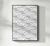 Dit digitale typografische patroon met speciale tekens is visueel opvallend. Het kunstwerk bestaat uit een vet en precies herhalend patroon van speciale tekens. De kunstenaar (kathrinmay) heeft aandacht besteed aan details zoals spatiëring, kerning en lay-out.