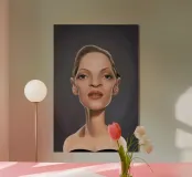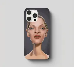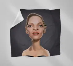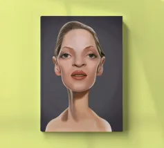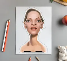 A humorous caricature illustration of the well-known American actress, writer, producer and model; Uma Thurman. One of a series of caricatures achieved for the Celebrity Sunday series, where a famous person is rendered within a day. The idea is to show them as if in a passport photo to have consistency.