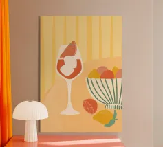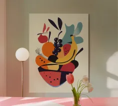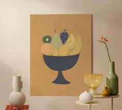 "Grape Array: Diversity in a Glass" toont een levendige verzameling druiven genesteld in een strak wijnglas, symbool voor harmonie in diversiteit. Dit opvallende stuk viert de schoonheid van verscheidenheid en eenheid door de kleurrijke overvloed van de natuur.