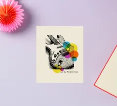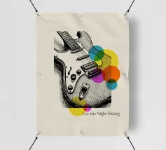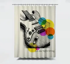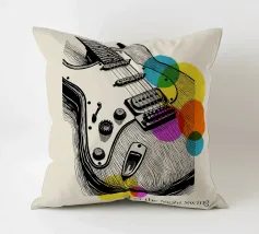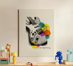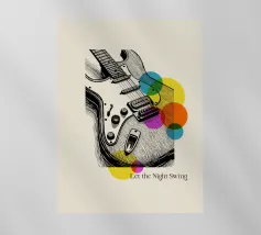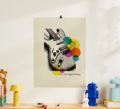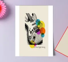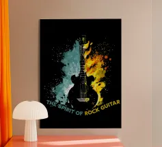 Bold lines and neon-inspired circles blend in this vibrant artwork of an electric guitar. A dynamic and stylish poster for musicians, music enthusiasts, or anyone looking to add a touch of rock and roll energy to their room.
