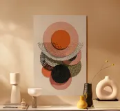 A contemporary Christmas composition built from textured circles in earthy and festive tones, evoking the spirit of Bauhaus geometry. Perfectly balanced between playful and sophisticated, this abstract tree-like design adds a warm and modern touch to any space. Ideal for those who appreciate minimalism with a twist of holiday cheer.