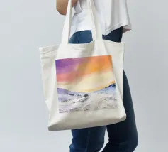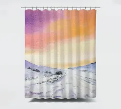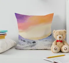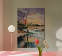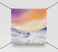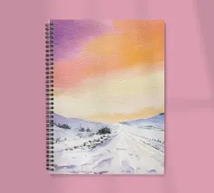 Winter aquarel landschap zonsondergang in oranje, roze, violet