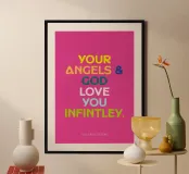 We gebruiken jouw ontwerp - in met de hand gemaakte lijsten. Klaar om op te hangen.