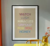 We gebruiken jouw ontwerp - in met de hand gemaakte lijsten. Klaar om op te hangen.
