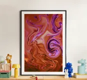 Abstract dynamisch patroon in oranje, bruin en paars poster met houten frame