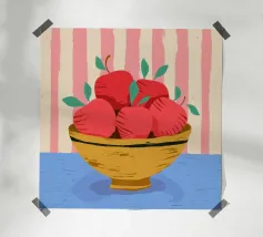 In dit kleurrijke ontwerp zijn de appels tot in detail getekend, waardoor de versheid en natuurlijkheid van het fruit wordt weergegeven.