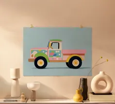 Veelkleurige auto, speelgoedauto, kinderkamer kunst