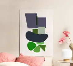 Dit op Bauhaus geïnspireerde kunstwerk geeft een nieuwe invulling aan industriële vormen met een artistieke twist. De abstracte compositie van geometrische vormen en primaire kleuren nodigt de toeschouwer uit in een ruimte waar design en functionaliteit dezelfde taal spreken.