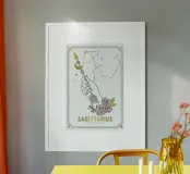 We gebruiken jouw ontwerp - in met de hand gemaakte lijsten. Klaar om op te hangen.