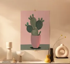 Breng een vleugje groen in je ruimte met poster “Cactus” van sketch_visual_studio! Perfect voor liefhebbers van moderne, minimalistische decoratie en voor iedereen die van planten houdt maar niet veel tijd heeft voor onderhoud. Deze poster past mooi in elke kamer, van je woonkamer tot de slaapkamer, en is perfect als cadeau voor vrienden of familie die houden van unieke kunst. De frisse, heldere kleuren brengen levendigheid en een gezellige sfeer in je huis. Maak je interieur compleet en laat deze schattige cactus in een stijlvolle pot je muur versieren!