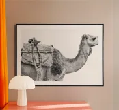 Portret van een kameel. In zwart-wit. Wandeling door de woestijn in Ethiopië. Dier in de natuur van de Danakil depressie in Afrika.