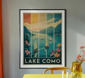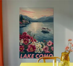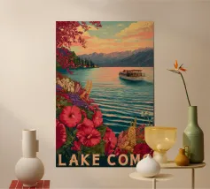 Breng de schoonheid van Lake Como in huis met deze vintage travel poster. Perfect voor liefhebbers van reizen en natuur, en een mooie aanvulling voor elke woonkamer of studeerkamer.