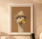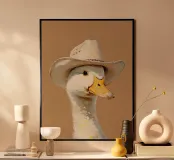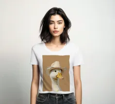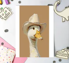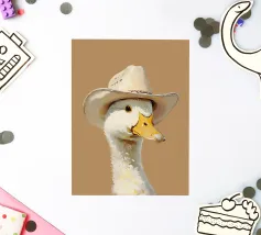 Deze charmante eend is niet zomaar een vogel, hij is een cowboy die klaar is voor de rodeo!