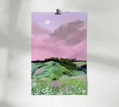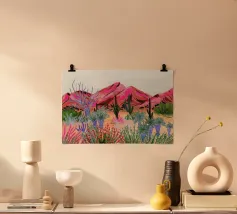 Sarah Gesek geeft haar landschappen een buitenaards wonderlandgevoel met rijke kleuren en brengt verre werelden bij je thuis. De kunstenares uit Seattle werkt het liefst met acrylverf op papier, maar ook met gouache, kleurpotloden, waskrijt en meer. Geïnspireerd door het natuurlijke schouwspel van ruige kliffen en glooiende tuinen, sterrennachten en sfeervolle luchten, geven Sarah's werken een gevoel van reislust. Duik erin, wandel er doorheen en word opnieuw verliefd op onze wereld.
