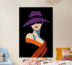 . Een opvallende mix van eenvoud en durf, dit kunstwerk vangt de essentie van vrouwelijkheid met een twist. De levendige oranje achtergrond steekt af tegen de diepblauwe bol en creëert een fascinerend contrast. De figuur, met een minimalistisch wit gezicht en verleidelijke rode lippen, straalt een gevoel van mysterie en kracht uit. Het is als een visueel raadsel - wat zit er achter die gedurfde vorm? Perfect voor wie houdt van abstracte kunst die boekdelen spreekt zonder een woord te zeggen. Ideaal om een vleugje moderne elegantie toe te voegen aan elke ruimte