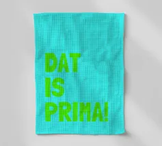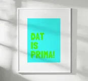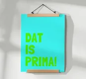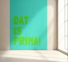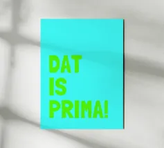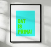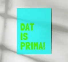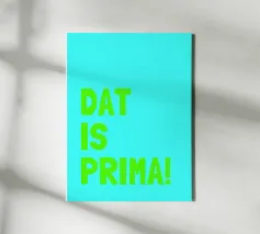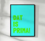 Deze houten lijst kunstprint met de tekst 'Dat is prima!' in speels groen op een helderblauwe achtergrond is een stijlvolle toevoeging aan jouw interieur. Perfect voor woonkamer, kantoor of kinderkamer als motiverende wanddecoratie. Gemaakt van hoogwaardige materialen met duurzame afwerking, vervaardigd volgens Europese kwaliteitsnormen.