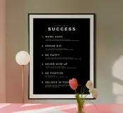 Ontdek een wereld waar inspiratie en motivatie gedijen. Van krachtgevende kunst tot succesgericht decor, onze ontwerpen helpen je een positieve, opbeurende omgeving te creëren. Elk kunstwerk is perfect voor thuis of op kantoor en stimuleert creativiteit, ambitie en dagelijks succes.