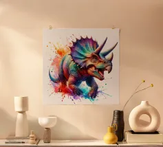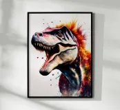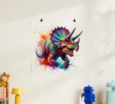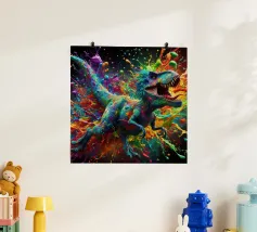 Deze houten lijst art print met een levendige dinosaur design is perfect voor kinderkamers en speelruimtes. Uitgevoerd op hoogwaardig, duurzaam papier met scherpe kleuren en details. Een uniek cadeau voor dinosaur liefhebbers en kinderen die van avontuur houden.