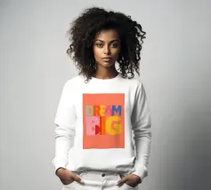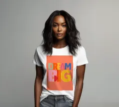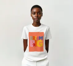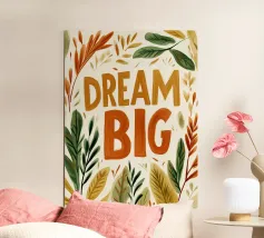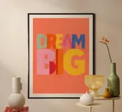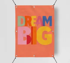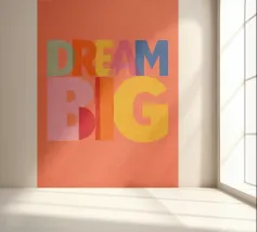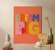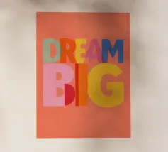 Deze moderne kunstprint met de inspirerende tekst "Dream Big" is perfect voor elke ruimte. Met levendige kleuren en een speelse typografie is het een unieke toevoeging aan je woondecoratie. Ideaal voor de kinder- of tienerkamer, deze print moedigt aan tot groots dromen.