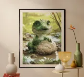 Een kleine alligator zat zelfverzekerd op een rots poster