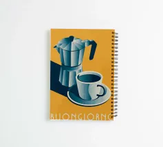 koffie koffiepot espressoapparaat kopje schotel schaduw ochtend drank drank keuken ontbijt cafeïne tekst Italiaans groet retro vintage metaal keramiek handvat