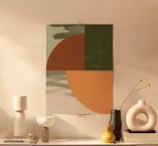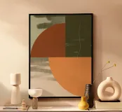 Een minimaal, suggestief stuk dat is ontworpen om moderne elegantie en de warmte van het herfstseizoen in je huis te brengen. Dit geometrische abstracte werk heeft een geraffineerd palet van verbrand oranje, diep olijfgroen en aardetinten. De compositie verkent de eenvoud van de curve en het contrast van rijke, getextureerde velden. Dit kunstwerk is perfect voor eigentijdse interieurs en is een ingetogen statement van herfstdecoratie en minimalistische fine art.