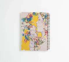 Portretten van drie verstrengelde vrouwen, uitgevoerd in Indiase inkt met verf voor de planten in het bijzonder, goudverf en oliepastels voor de gele achtergrond.