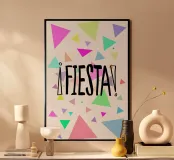 Breng vreugde in je huis met deze vrolijke "Fiesta" kunstprint. Het kleurrijke ontwerp vol geometrische vormen is perfect voor elke ruimte, of je nu op zoek bent naar een sfeervolle toevoeging aan je woonkamer, slaapkamer of zelfs een kinderkamer. Deze houten lijst zorgt ervoor dat het kunstwerk er nog beter uitziet, terwijl de vrolijke kleuren een speelse noot geven aan je interieur. Het is een geweldige keuze voor liefhebbers van moderne en abstracte kunst. Hang het als statement stuk of combineer het met andere prints voor een eclectische uitstraling!
