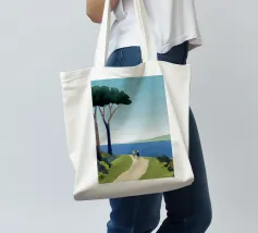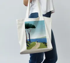 "Architectuurtekening ontmoet reisposter in art-decostijl."
