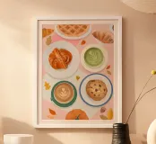 We gebruiken jouw ontwerp - in met de hand gemaakte lijsten. Klaar om op te hangen.