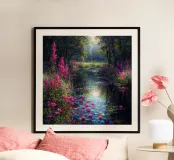 We gebruiken jouw ontwerp - in met de hand gemaakte lijsten. Klaar om op te hangen.