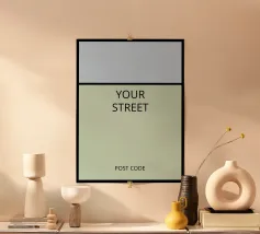 We gebruiken jouw ontwerp - in met de hand gemaakte lijsten. Klaar om op te hangen.